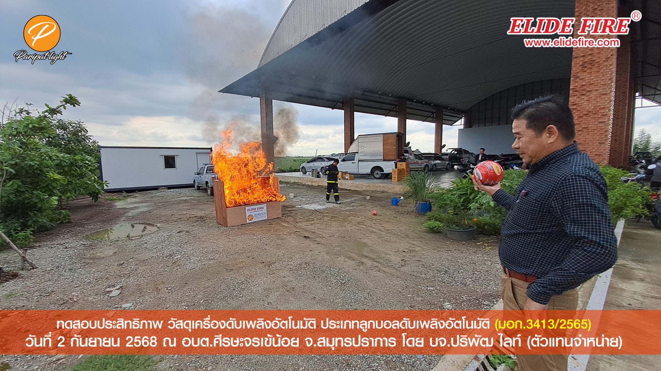 ทั้งนี้ ลูกบอลดับเพลิงอัตโนมัติ ผลิตโดยคนไทย 100% มีมาตรฐาน มอก.3413/2565 ผู้ที่สนใจกรุณาตรวจสอบของแท้ยี่ห้อ ELIDE FIRE BALL เท่านั้น