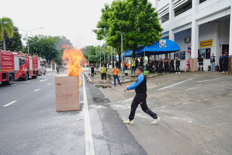 และกำลังลุกโซนไปแล้วประมาณ 3 นาที โดบการโยนดับเพลิงของเจ้าหน้าที่เทศบาลนครฯ