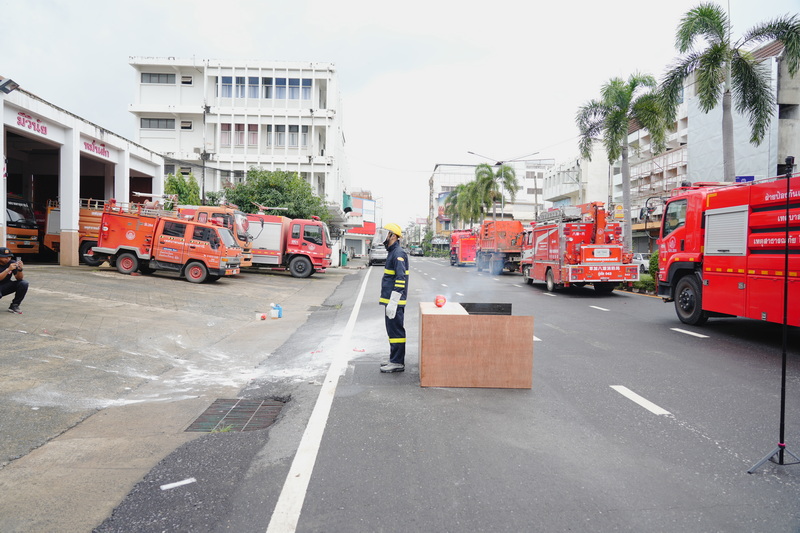 โดยมี นางสาวพิศทยา ไชยสงคราม นายกเทศมนตรีเทศบาลนครอุบล และทีมป้องกันและบรรเทาสาธารณภัยเทศบาลนครอุบลราชธานีรับชม โดยสาธิตใน 3 สถานีหลัก
