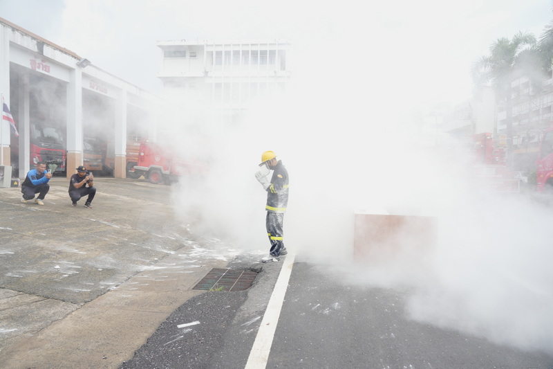 สถานีที่ 3 การสาธิตด้านความปลอดภัยในการใช้งาน โดยทำการวางลูกบอลดับเพลิงไว้ข้างตัวแล้วทำให้ลูกบอลดับเพลิงทำงาน เพิ่อแสดงให้เห็นว่าการทำงานของลูกบอลดับเพลิงนั้นไม่เป็นอันตรายกับผู้ใช้หรือวัตถุสิ่งของ สารเคมีก็ยังเป็นมิตรกับสิ่งแวดล้อมอีกด้วย